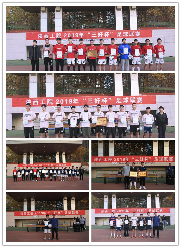 经过了20多天、10支参赛队伍的激烈角逐,2019年陕西工院“三好杯”足球联赛圆满落下了帷幕。2019年11月15日,在院足球场进行了简短的颁奖仪式,体育部张绪绪教授,学生处副处长耿丽副教授,团委书记赵双军副教授,院足球队教练及本届比赛裁判长董斌、高波副教授出席颁奖仪式。在本次比赛中,土木工程学院、商贸与流通学院、信息工程学院分别获得本届足球赛第一名、第二名、第三名;信息工程学院辛旭辉同学获得了获得本届足球赛的最佳射手
