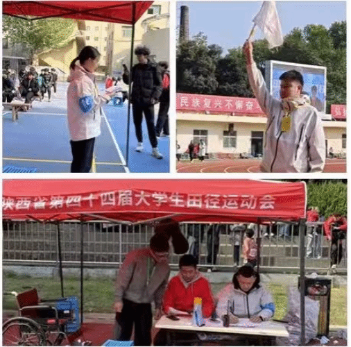 陕西省第四十四届大学生田径运动会是全省规模最大、水平最高的大学生体育盛会之一,本届共吸引87所高校的2800名运动员参赛。我校三位教师均拥有丰富的田径赛事经验。其中,党波老师精通竞赛组织与规则研判;温晴老师深耕运动训练学,技术判罚精准到位;赵柯旭老师则在多项省市级大赛中执裁表现突出。赛事期间,三位教师恪守职业准则,严守竞赛规程,在田赛与径赛岗位上判罚准确、执法公正,以其专业的执裁水准与严谨的工作态度,赢得了组委会及各参赛队伍的一致好评。